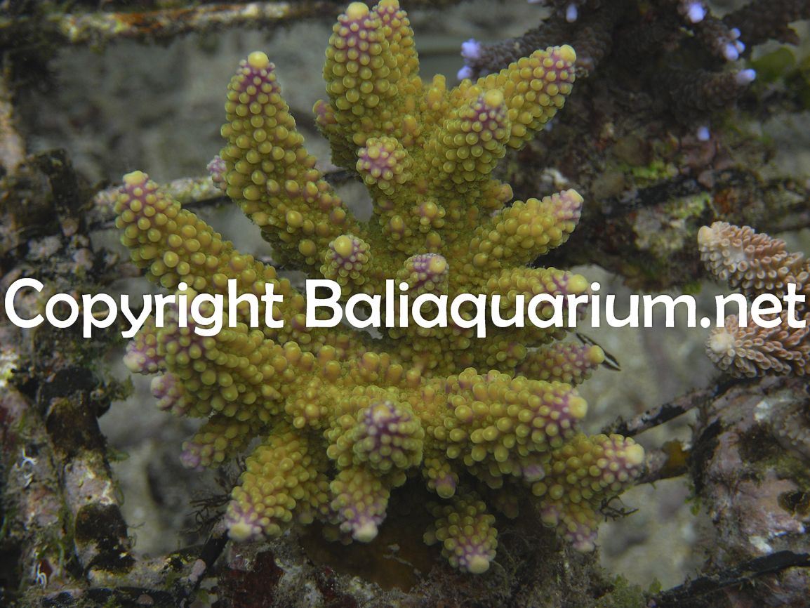- Acropora secale green with purple tips