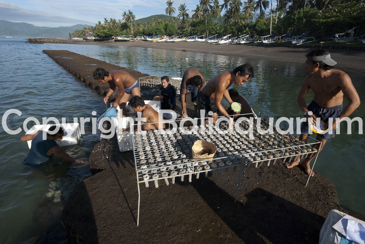 All corals are tagged; given a number corresponding to the company, the genus, the species, the generation, the date of planting… it is embedded in the glue fixing the fragment on its base. Sites are inspected every two years by the Indonesian Scientific Institution, fisheries department, management authority. It’s only if the result is good that export license and quota are given.